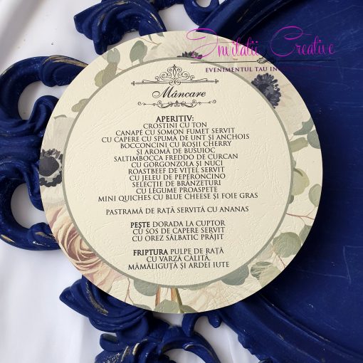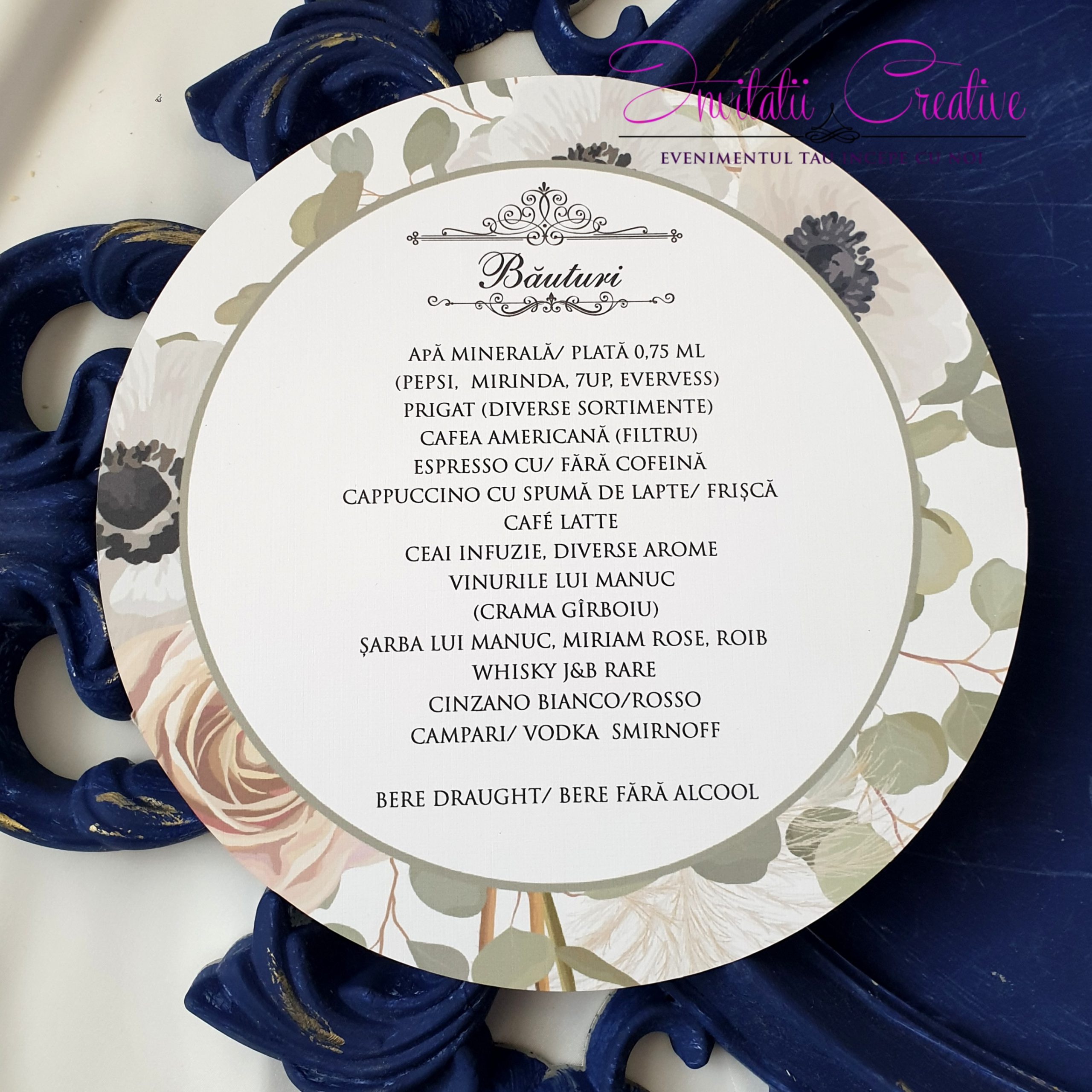 Meniu Nunta Rotund Design Floral Trandafiri si Anemone