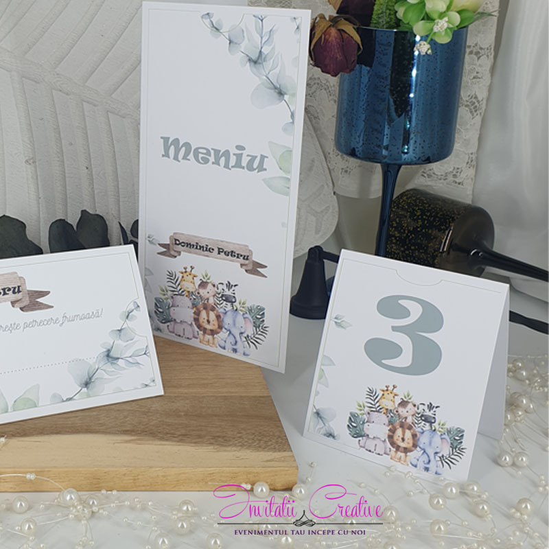 Numar de Masa Botez Animalute Jungle si Design Frunze Pastel