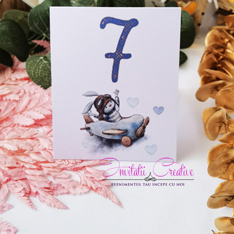 Numar de Masa Botez Haios cu Iepuras Aviator Acuarela
