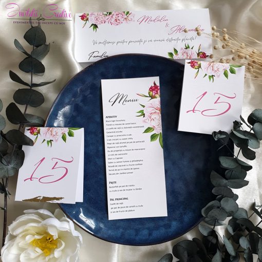 Caracteristici ale Meniu nunta cu motive florale delicate: