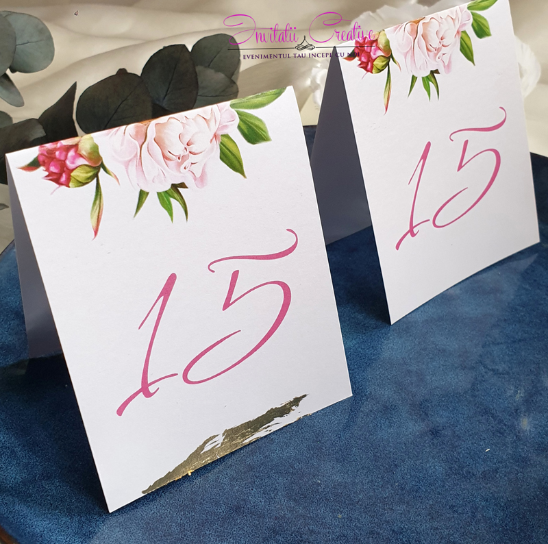Numar de masa cu bujori roze pastel intens
