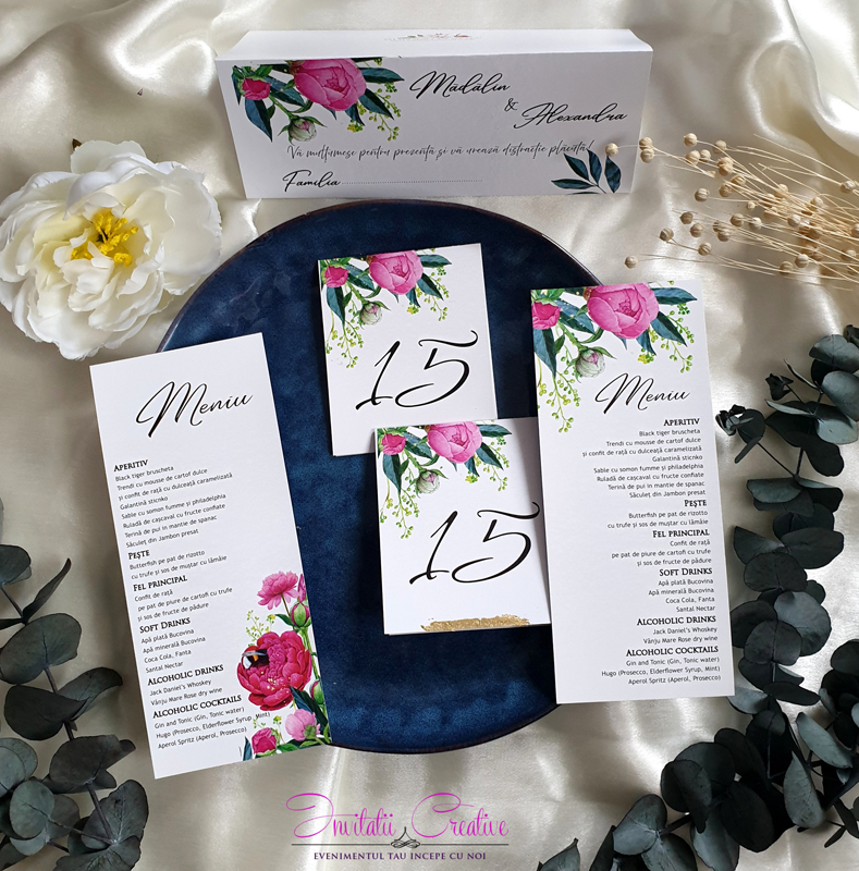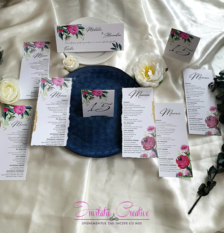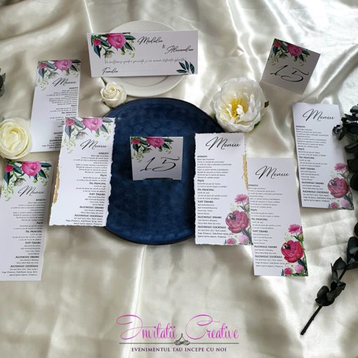Caracteristici ale Meniu nunta cu motive florale delicate: