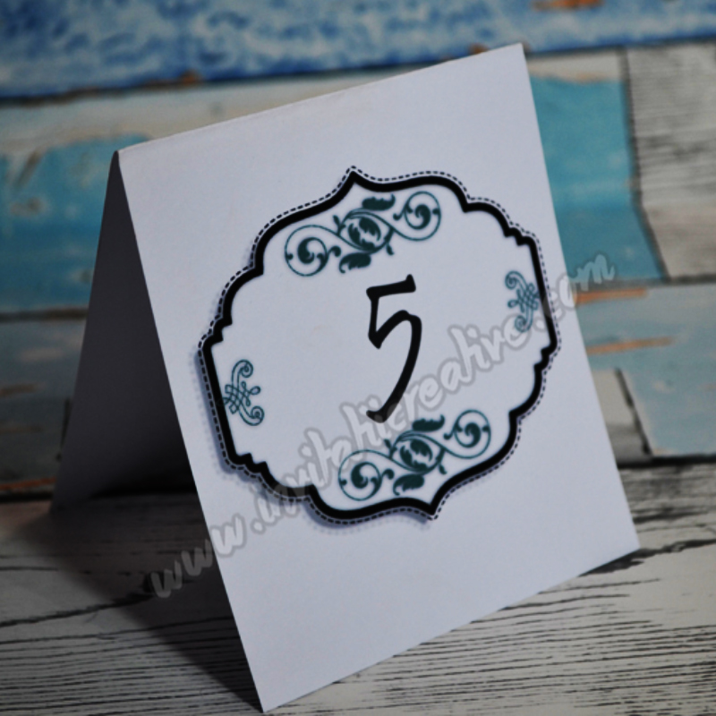Numar de masa din carton special cu imprimeu verde turqoise inchis.
