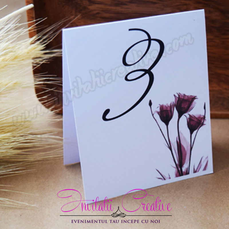 Numar de Masa Nunta cu Flori de Camp Bordo