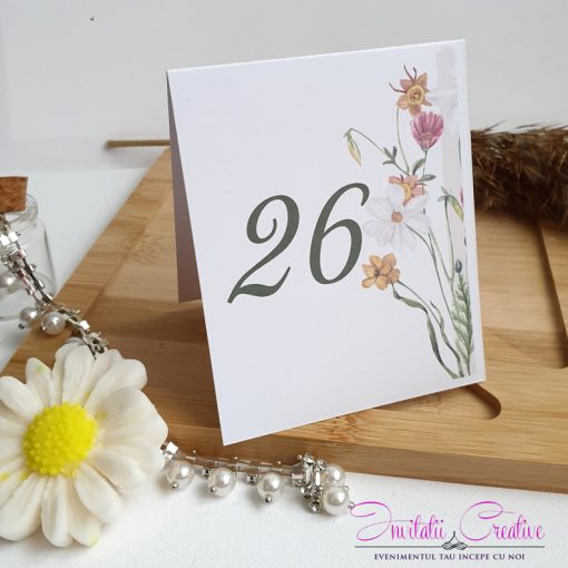 Numar de masa nunta cu flori de camp delicate