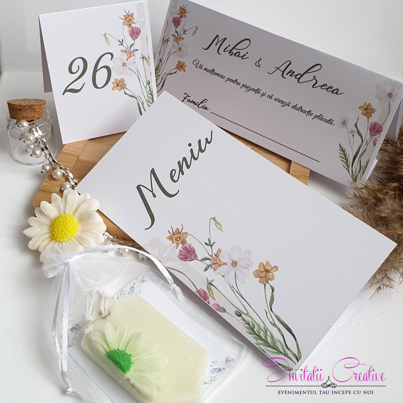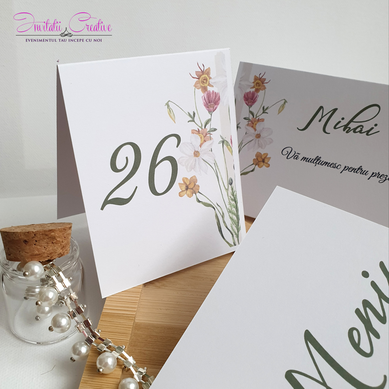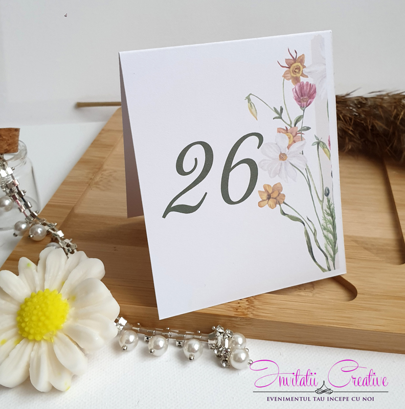 **** Transport gratuit peste o anumita suma: – vezi suma in Cum ComandNumar de masa nunta cu flori de camp delicate