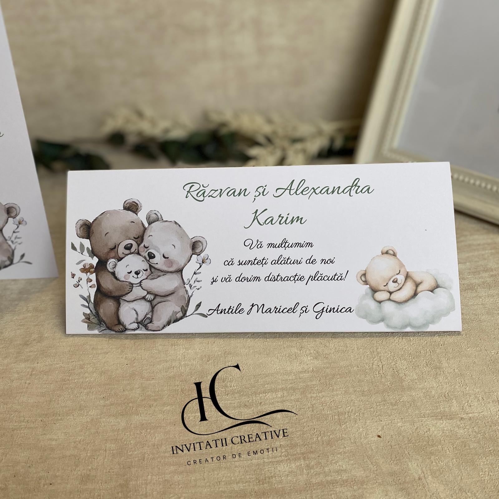 Putem realiza setul de papetarie in aceeasi tematica (plic de bani, meniu, invitatie, placecard, lista invitati / opis, numar masa, etichete marturii, marturii).