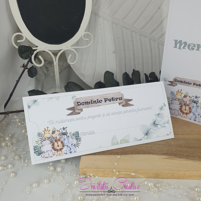 Plic de Bani Botez Animalute Jungle si Design Frunze Pastel