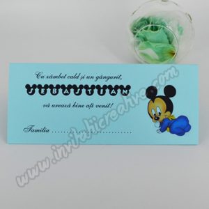 Putem realiza setul de papetarie in aceeasi tematica (plic de bani, meniu, invitatie, placecard, lista invitati / opis, numar masa, etichete marturii, marturii).