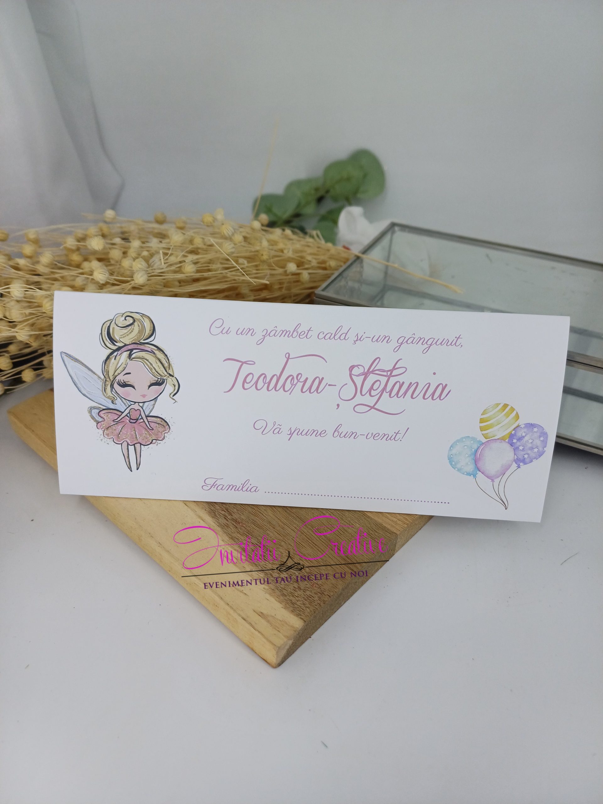 Plic de Bani Botez Elegant Zana cu Rochita Roz