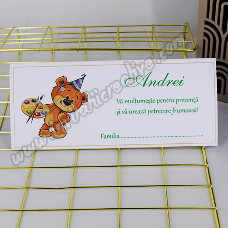 Putem realiza setul de papetarie in aceeasi tematica (plic de bani, meniu, invitatie, placecard, lista invitati / opis, numar masa, etichete marturii, marturii).