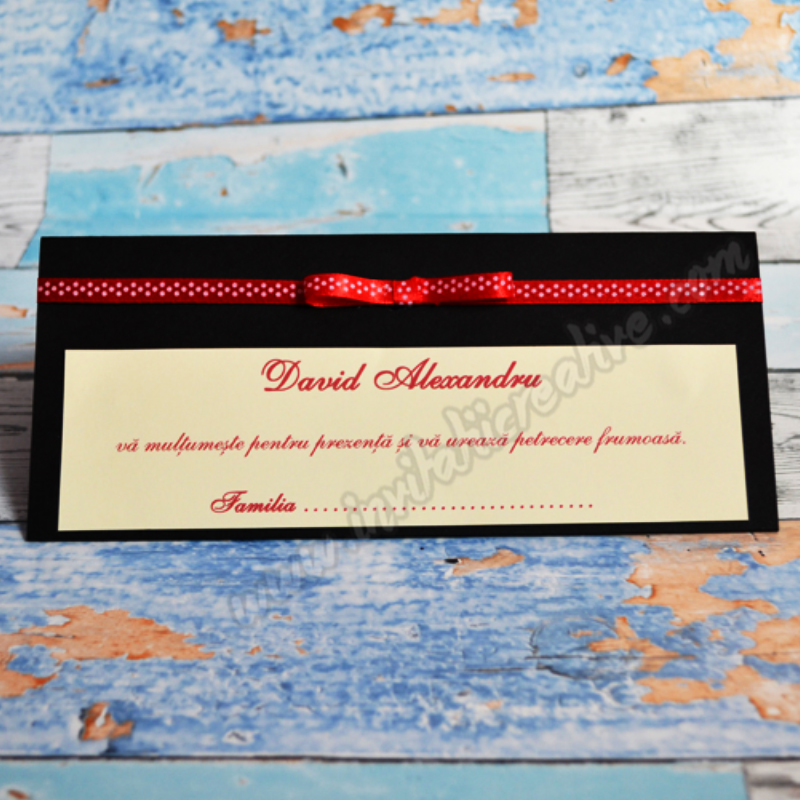 Asortat cu restul papetariei si cu decorul locatiei, transmiți stil, bun gust și respect profund față de invitatii tau.