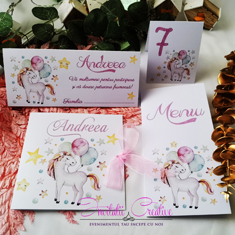 Daca aveti un eveniment tematic si doriti toate produsele asortate puteti opta pentru setul format din invitatie, plic de bani, meniu si numar de masa cu acelasi design. Pentru detalii ne puteti contacta telefonic (0736 035 159,0756 237 365), pe email (office@invitatiicreative.com) sau pe chat-ul de pe site.