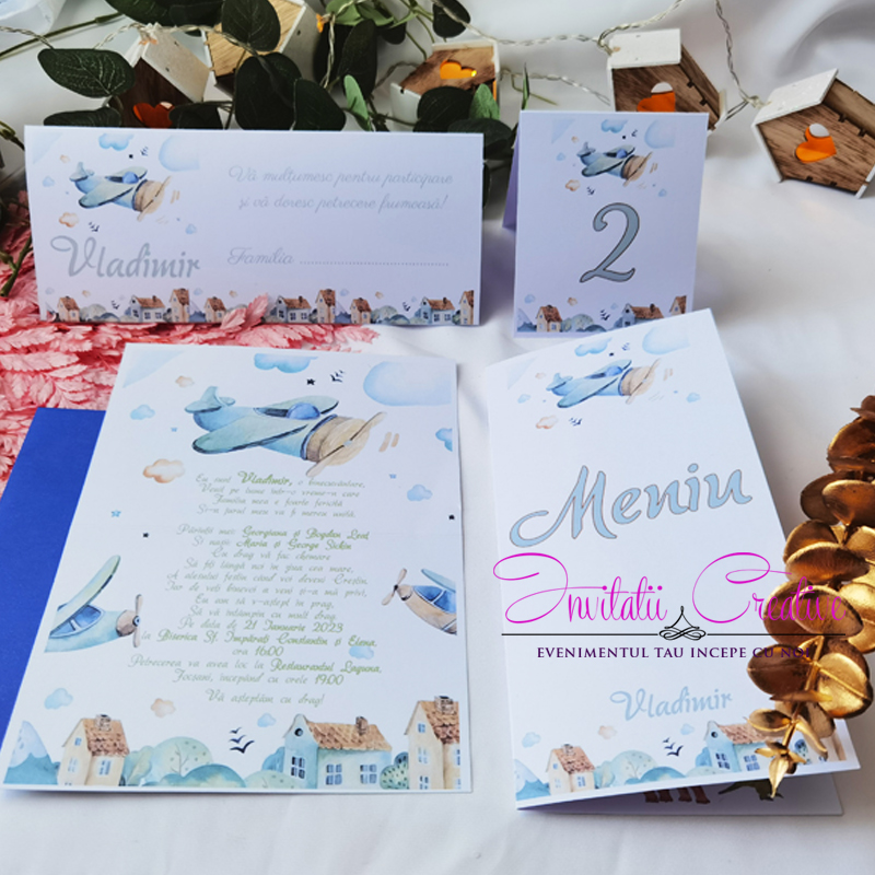 Plic de Bani Botez Watercolor Tematica Calatorie cu Avionul