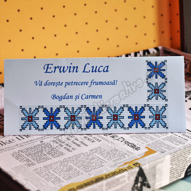 Dacă opțiunea de scriere a numelor sau de printare nu este selectată, plicurile vor fi livrate doar cu designul prezentat în fotografie