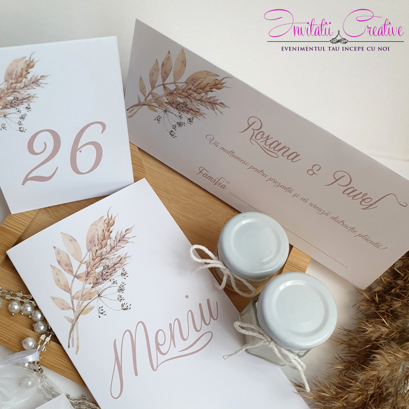 ✅ Calitate premium – carton mat de 250 g, rezistent și elegant ✅ Design sofisticat, ideal pentru orice tip de nuntă ✅ Personalizare și pachete complete, pentru o organizare fără stres