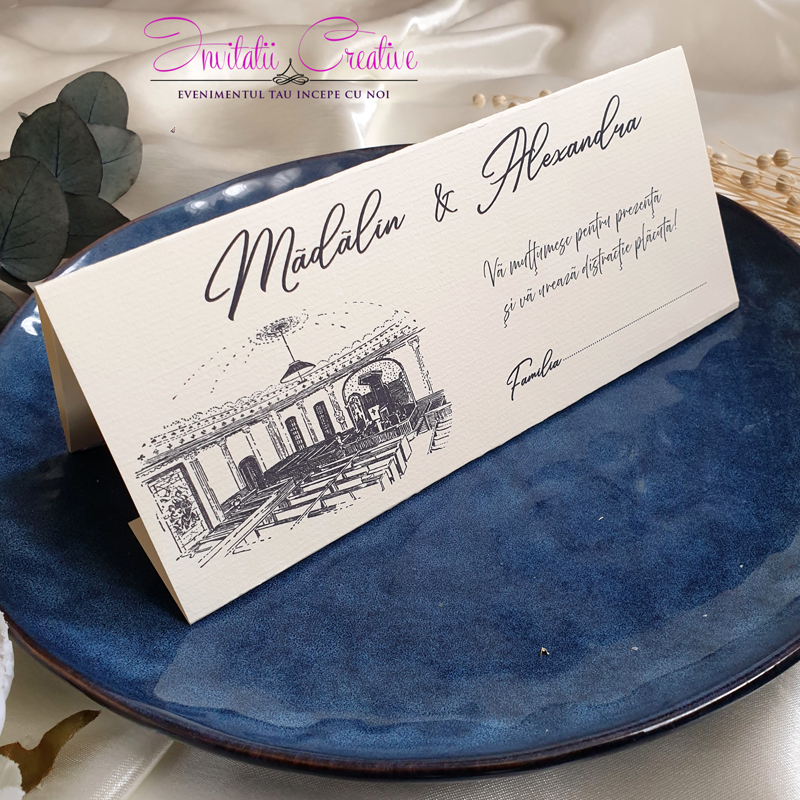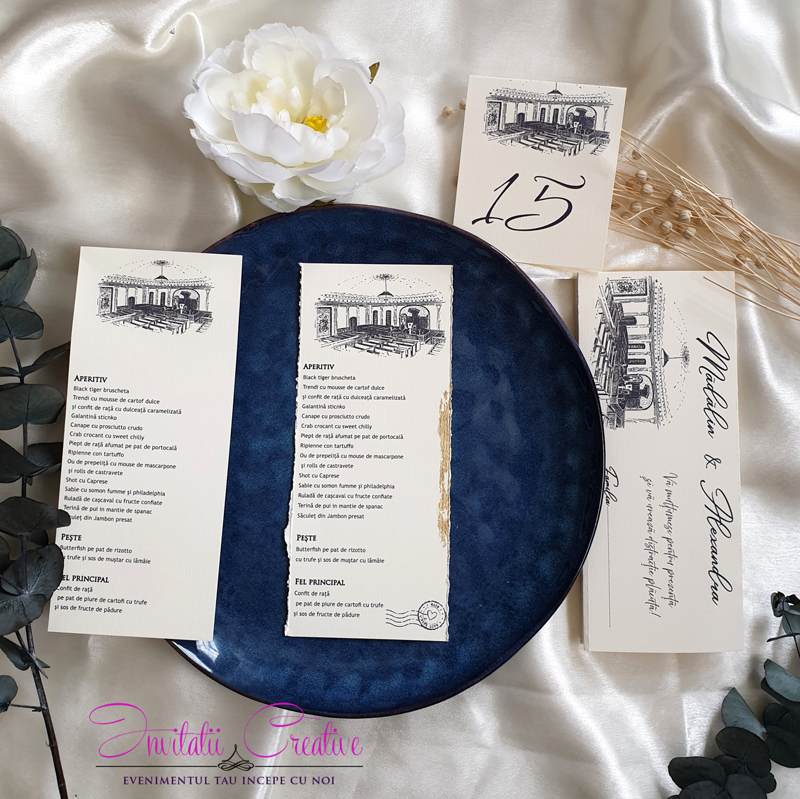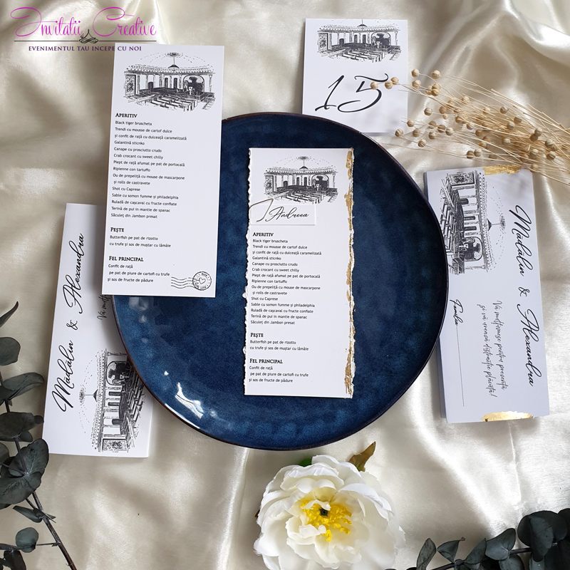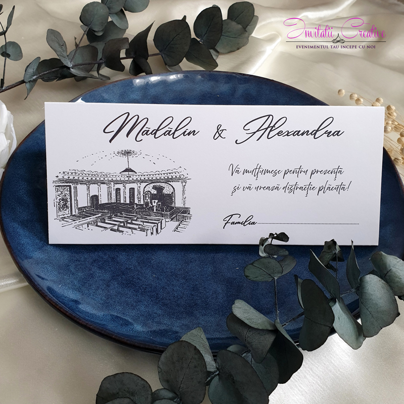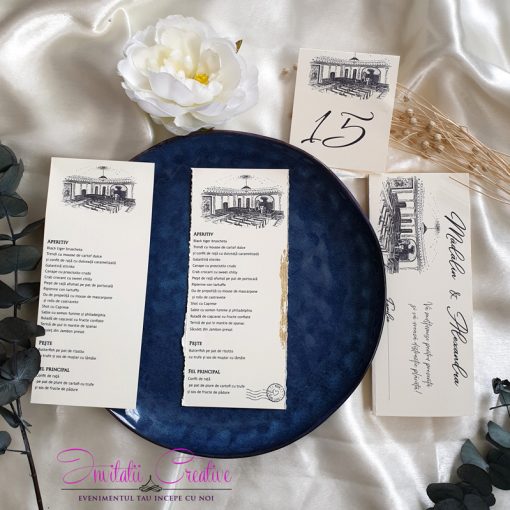 Asortat cu restul papetariei si cu decorul locatiei, transmiți stil, bun gust și respect profund față de invitatii tau.