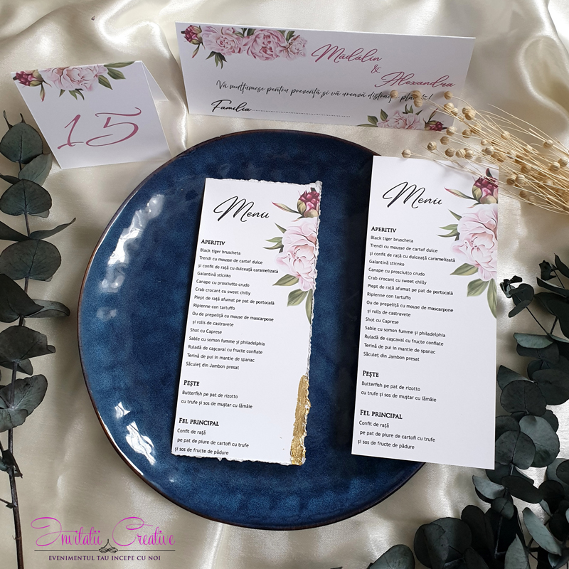 Sunt disponibile și meniuri și numere de masa cu același model.