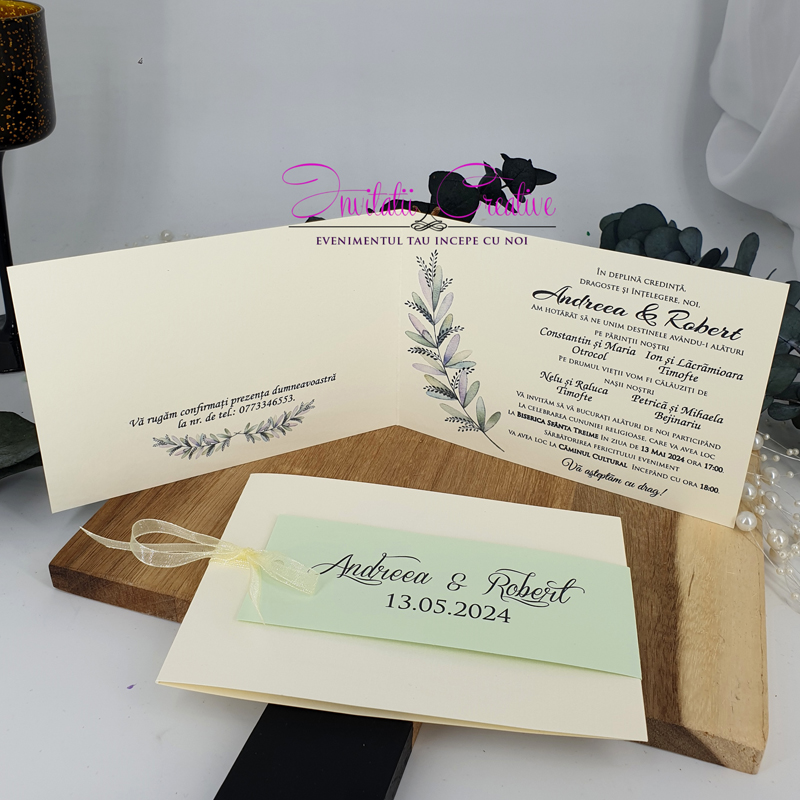 Invitatiile sunt realizate din carton de 250 gr, cu design deosebit, personalizat pentru fiecare eveniment.