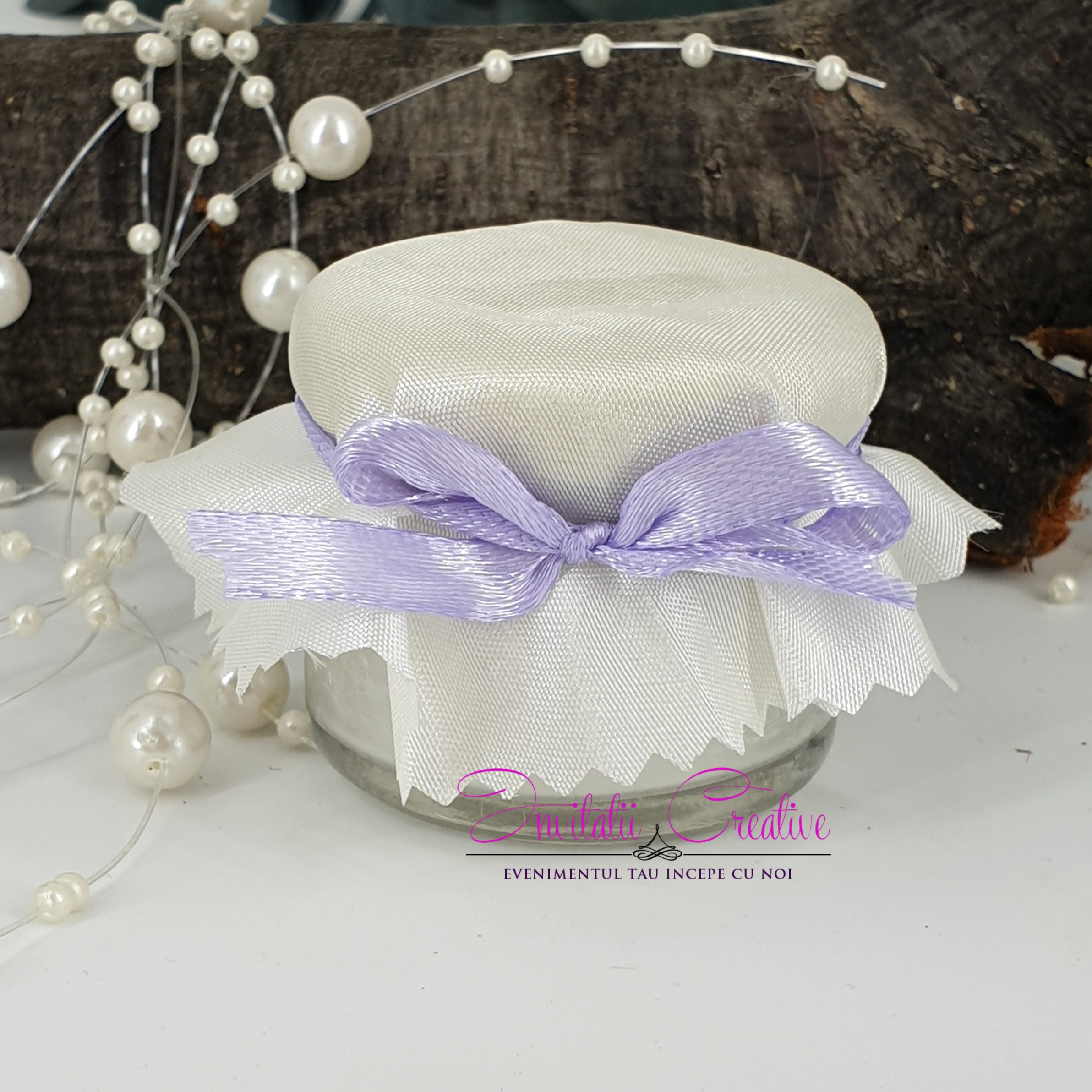 Marturie Lumanare Parfumata cu Imbracaminte Alba Satin