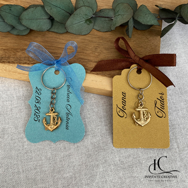🔑 Mini brelocuri elegante – mărturii de nuntă sau botez pe carton sidefat