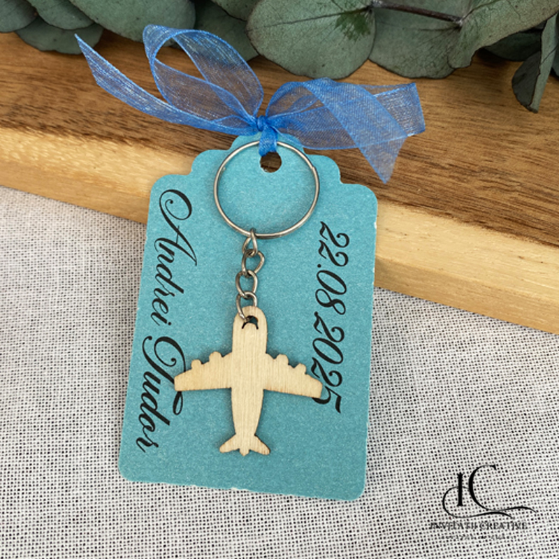 Transformă-ți evenimentul într-o amintire de neuitat cu aceste mini brelocuri lemn, prezentate cu rafinament pe un carton decupat sidefat, disponibil în nuanțe sofisticate: argintiu, auriu, roz sidefat, bleu sidefat și mov sidefat. Fiecare breloc este legat cu grijă, oferind un cadou simbolic și elegant pentru invitații tăi.