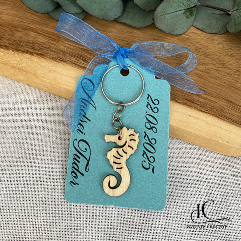 Transformă-ți evenimentul într-o amintire de neuitat cu aceste mini brelocuri lemn, prezentate cu rafinament pe un carton decupat sidefat, disponibil în nuanțe sofisticate: argintiu, auriu, roz sidefat, bleu sidefat și mov sidefat. Fiecare breloc este legat cu grijă, oferind un cadou simbolic și elegant pentru invitații tăi.
