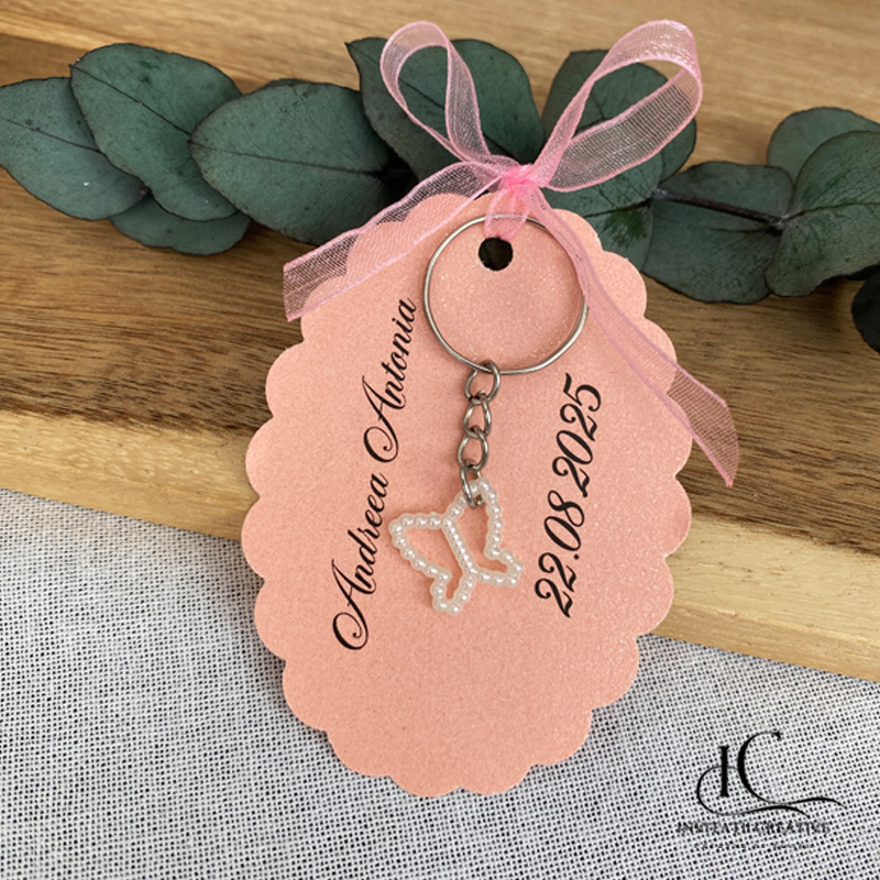 🔑 Mini brelocuri elegante – mărturii de nuntă sau botez pe carton sidefat