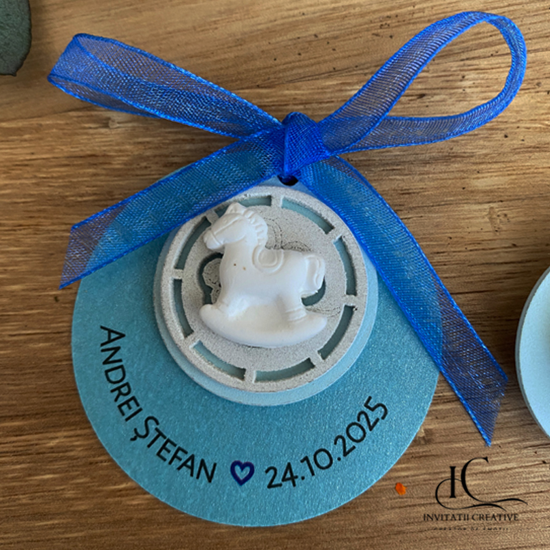 Cartonasul suport se poate personaliza cu numele si data evenimentului.