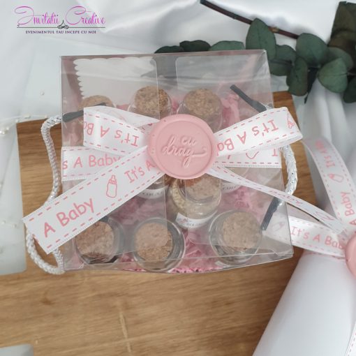 Această cutie elegantă este perfectă pentru a păstra toate ingredientele pentru prima băiță de dupa botez, fiind în același timp un obiect de decor rafinat. Accesorizata cu o panglica si cu sigiliu pentru a o face si mai deosebita.