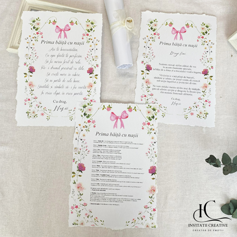 Set Mirodenii Prima Baita cu Nasii Dantela si Sigiliu este destinat utilizării în cadrul ritualului tradițional pentru baita de mir, desfășurat a doua zi după botez. Acest ritual este un moment plin de simbolism și emoție, în care copilul este curățat și binecuvântat, de nasi pentru a începe viața cu noroc, binecuvantare si sanatate.
