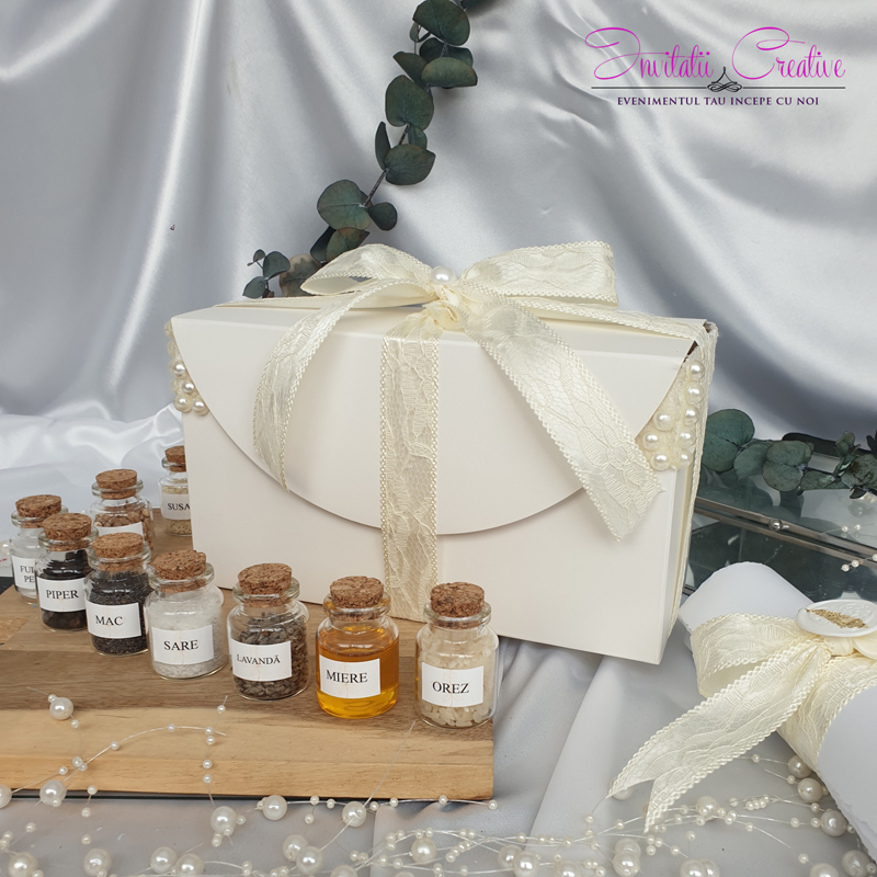 Acest set de mirodenii va transforma ceremonia băiței de mir într-un moment special și plin de iubire si va ajuta nasii cu ghidul complet al elementelor necesare. Instructiunile vă vor îndruma prin toți pașii necesari pentru a desfășura acest ritual tradițional românesc cu bucurie și ușurință.