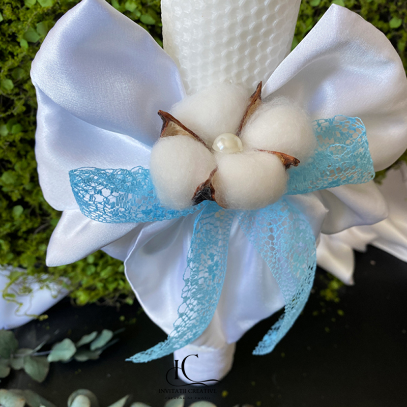 Lumânare de botez din ceară naturală de albine – un accesoriu elegant, artizanal, perfect pentru ceremonia voastra.