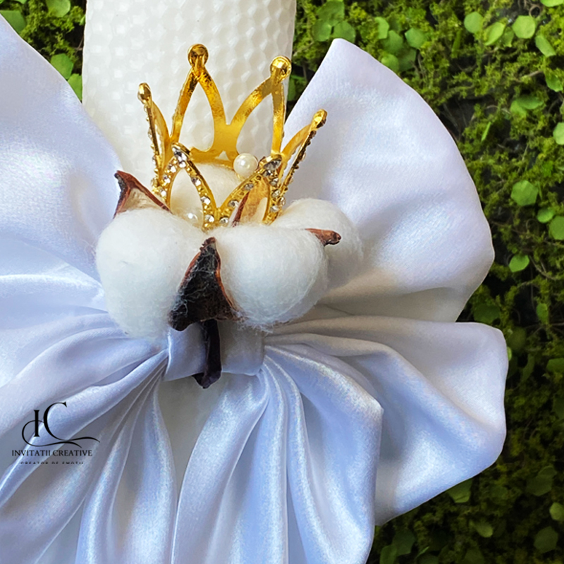 Lumânare de botez din ceară naturală de albine – un accesoriu elegant, artizanal, perfect pentru ceremonia voastra.