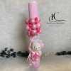 Creată manual cu grijă și inspirație, Lumanare Botez Canelata cu Ursulet si Baloane Verzi simbolizând începutul plin de speranță al unei vieți noi.