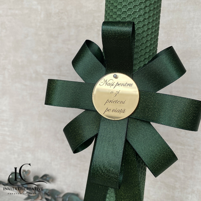 Lumanare de botez verde personalizata nasi pe viata