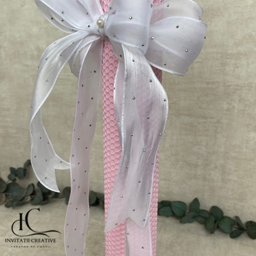 Lumanare fagure de botez roz cu fundita speciala